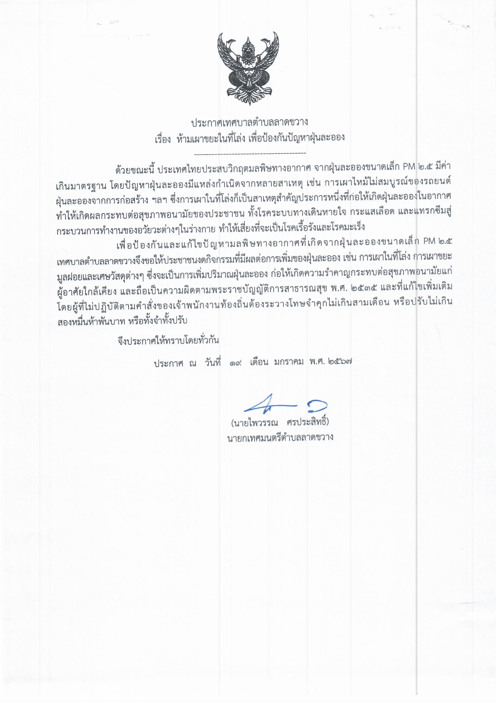เทศบาลตำบลลาดขวางขอความร่วมมือ ห้ามเผาขยะในที่โล่ง