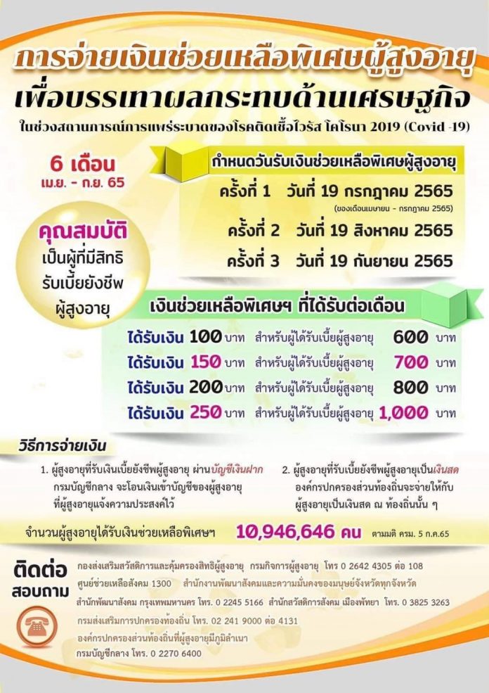 ประชาสัมพันธ์การจ่ายเงินช่วยเหลือผู้สูงอายุ