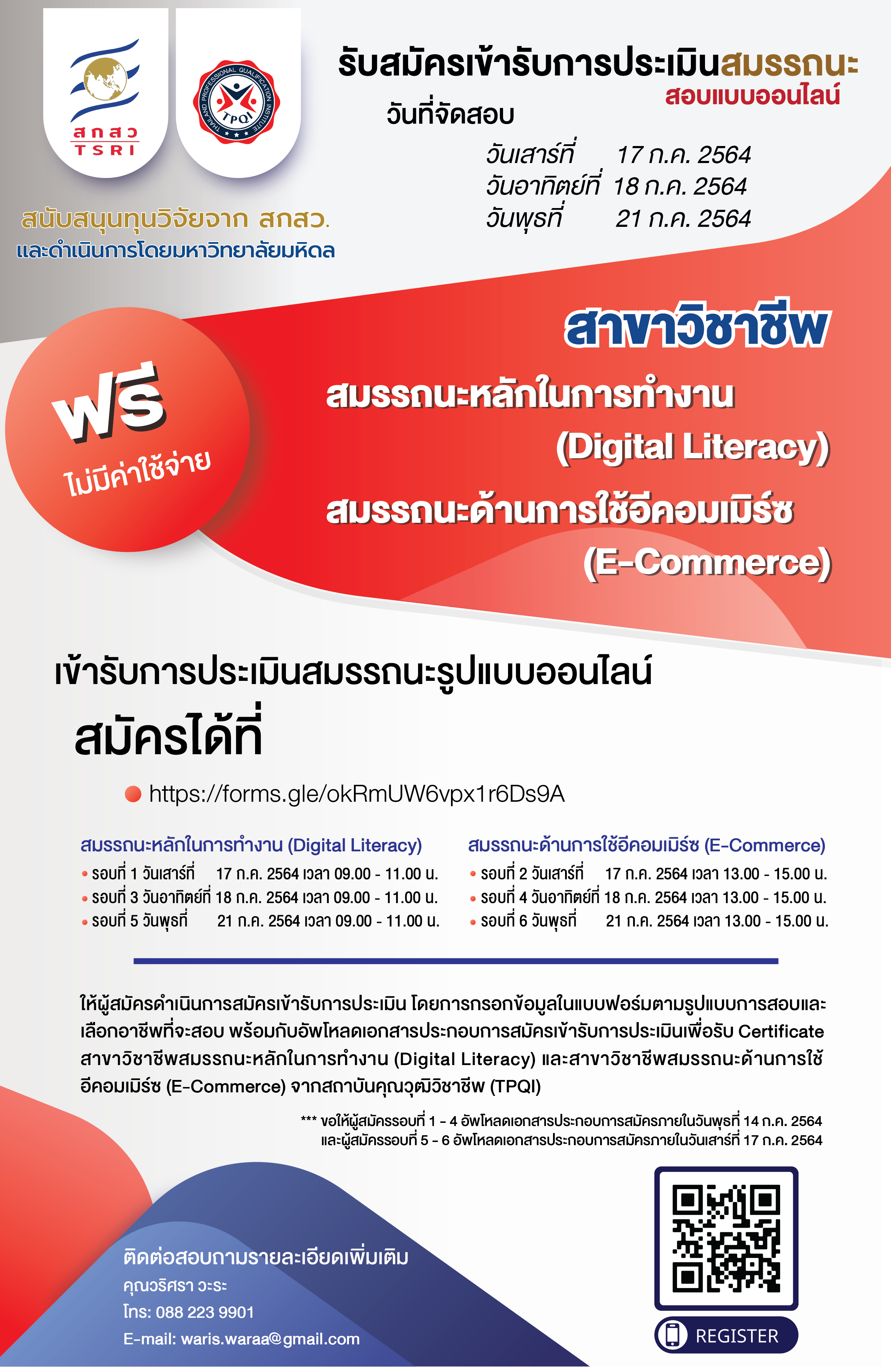 รับสมัครเข้ารับการประเมินสมรรถนะ (สอบแบบออนไลน์)