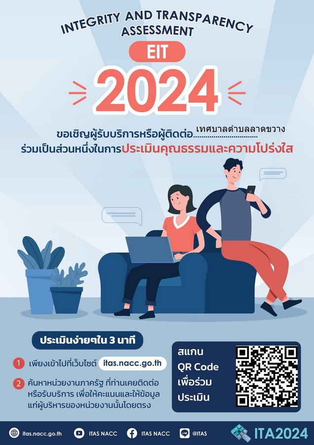 ขอเชิญผู้รับบริการหรือผู้ติดต่อเทศบาลตำบลลาดขวาง ร่วมเป็นส่วนหนึ่งในการประเมินคุณธรรมและความโปร่งใส (EIT2024)