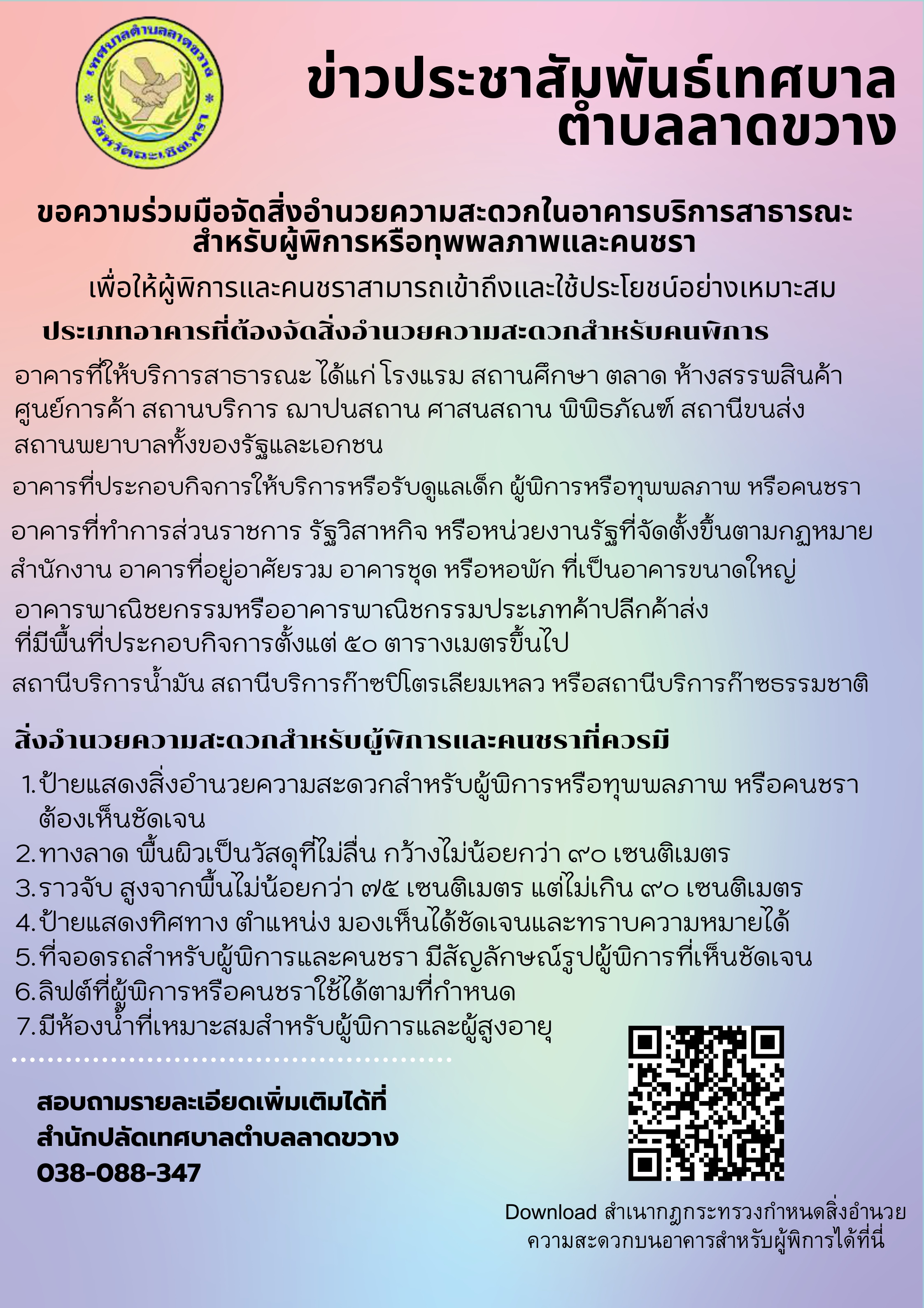 ประชาสัมพันธ์ขอความร่วมมือจัดสิ่งอำนวยความสะดวกสำหรับผู้พิการและคนชรา